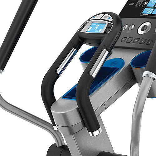 - In den ErgoGrip-Griffstangen unterhalb der Track Konsole des Life Fitness X8 Track ist ein Aktivitätsmonitor integriert, auf dem die derzeit beanspruchten Muskelgruppen angezeigt werden. DerAktivitätsmonitorerlaubt die Auswahl aus unterschiedlichen Trainingsmodi: