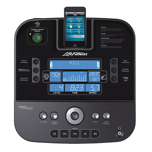 - USB-Port: Trainingsdaten können auf einem USB-Gerät gespeichert und über einen Computer auf das kostenlose Online-Toolxa0 Life Fitness Virtual Trainer Website übertragen werden. Übertragung vom PC auf die Track Konsole ebenfalls möglich.